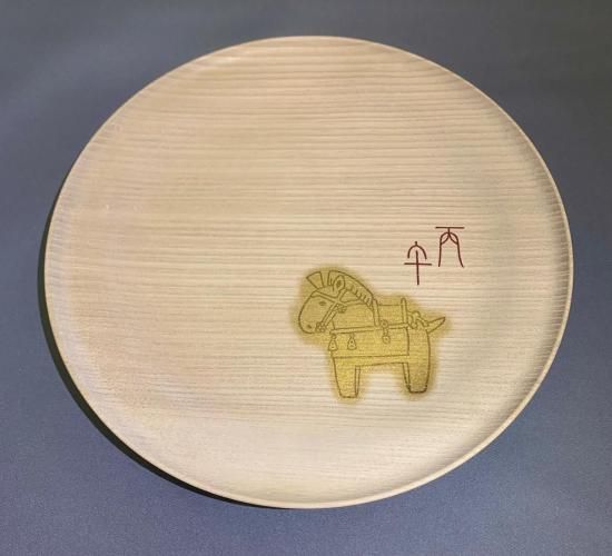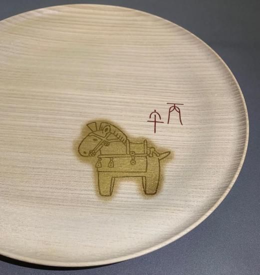 干支丸盆 「 馬 はにわ 漆絵 」 汚れ止め加工済み